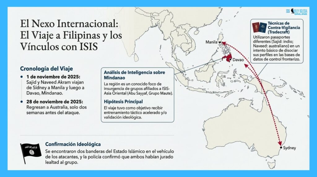 - La Conexión Internacional: Ambos viajaron a Mindanao, Filipinas, en noviembre de 2025, regresando apenas dos semanas antes del ataque. Se investiga si recibieron entrenamiento táctico o validación ideológica de grupos afiliados a ISIS en la región.