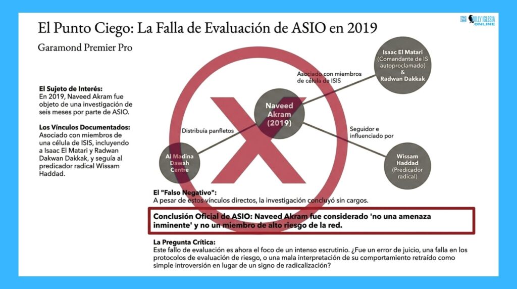 - El Hijo (El Ideólogo): Naveed, de 24 años, había sido investigado por la agencia de inteligencia ASIO en 2019 por vínculos con una célula de ISIS en Sídney. Sin embargo, fue catalogado como «no amenaza inminente» y degradado en la lista de prioridades, creando una brecha de vigilancia de seis años.