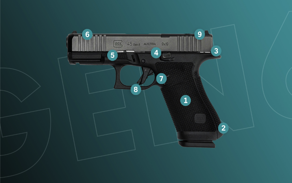 La estructura de la Gen 6 presenta una superficie de agarre completamente rediseñada. Glock ha perfeccionado un texturizado slip-proof que ofrece una adherencia casi táctil, asegurando que el arma permanezca anclada a la mano incluso bajo condiciones de humedad extrema. La adición de puntos de indexación integrados en el armazón (comúnmente llamados «pedales de gas») permite un control superior del retroceso, facilitando una cadencia de fuego rápida y precisa.