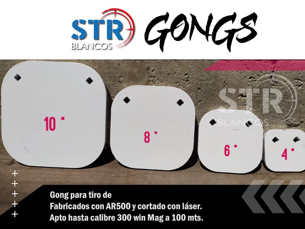 Práctica general de pistola y fusil; fundamental para Long Range. Durabilidad absoluta y feedback auditivo maximizado. Un Gong es un blanco pasivo, generalmente de gran tamaño (10, 12, 18 pulgadas o más), diseñado para soportar miles de impactos de una amplia gama de calibres. Los Gongs de STR estarán fabricados en AR500 de 3/8″ (para la mayoría de las aplicaciones) o 1/2″ (para calibres magnum o rangos más cortos de fusil). El sistema de montaje (cadenas o correas) es crítico: debe permitir que el gong oscile libremente, disipando la energía del impacto y aumentando exponencialmente su vida útil.