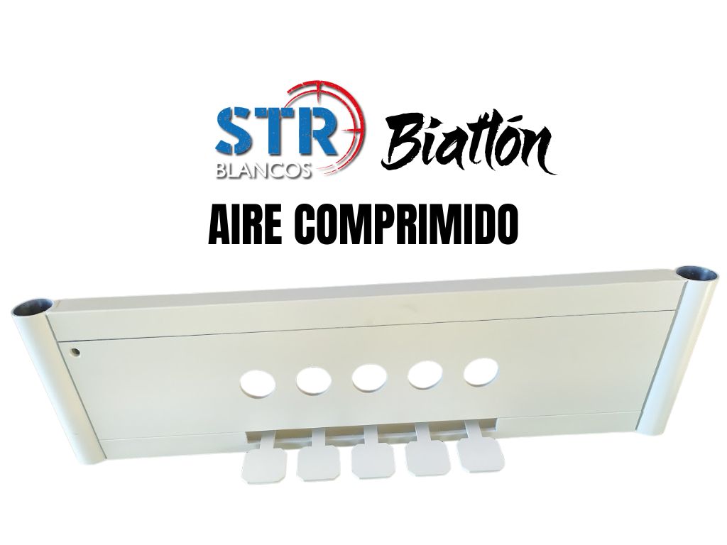 Combinación de esquí de fondo (o pedestrismo en verano) y tiro de precisión con calibre.22LR. Precisión extrema. El blanco de biatlón es un sistema reactivo con 5 objetivos (discos) que deben ser «volteados» (generalmente de negro a blanco) al ser impactados. El mecanismo debe ser lo suficientemente sensible para reaccionar a un proyectil de.22LR, pero lo suficientemente robusto para uso intensivo en exteriores. Un producto de nicho que demuestra la amplitud de STR. Requiere una ingeniería de precisión completamente diferente a la de los blancos de fuego central. El desafío es la fiabilidad absoluta del mecanismo de reseteo (generalmente un cordón).